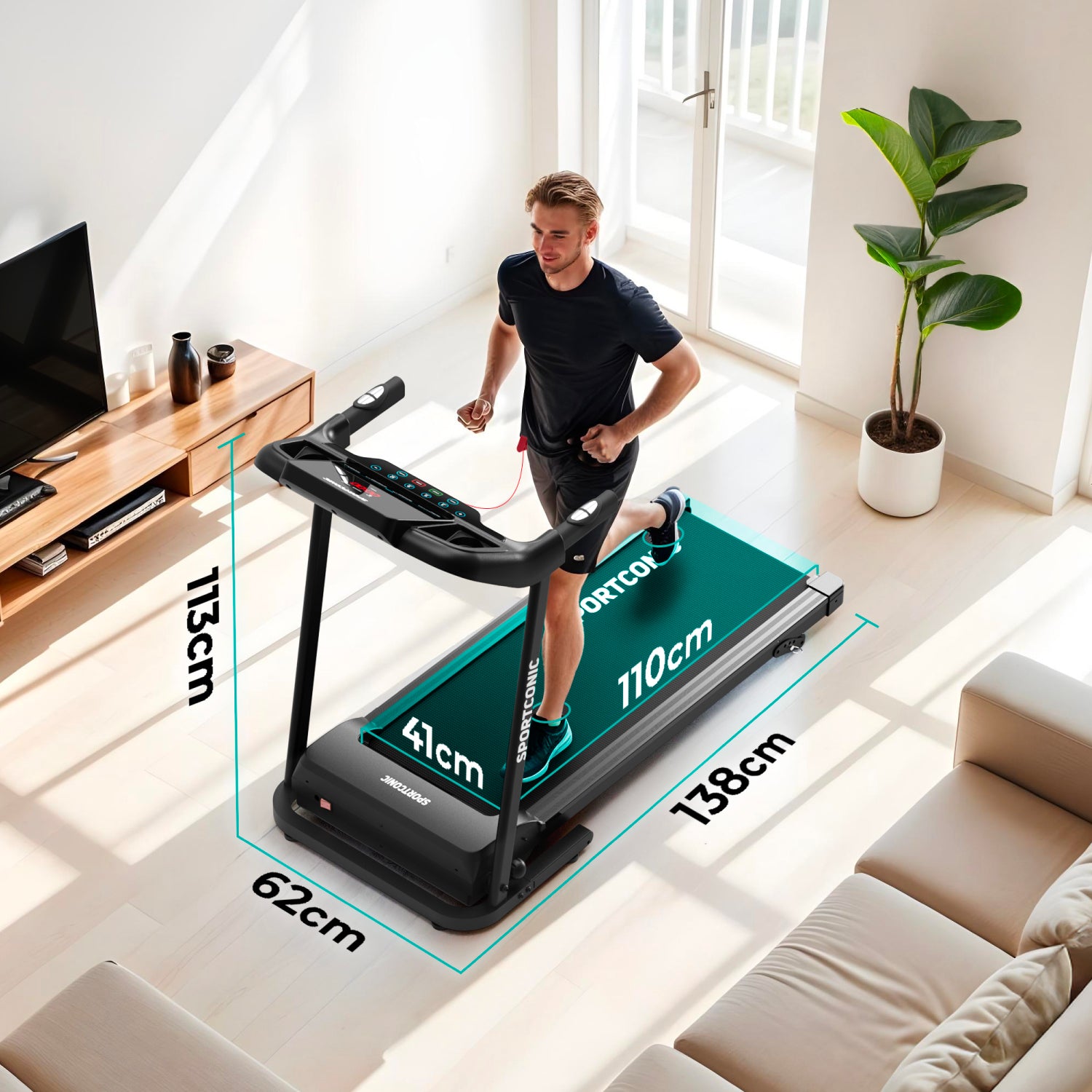 Taittuva juoksumatto, jonka nopeus on jopa 12 km/h ja jossa on 3 kaltevuusasetusta. Hiljainen, tehokas ja tilaa säästävä, ihanteellinen kotiharjoitteluun tai kuntoutukseen.