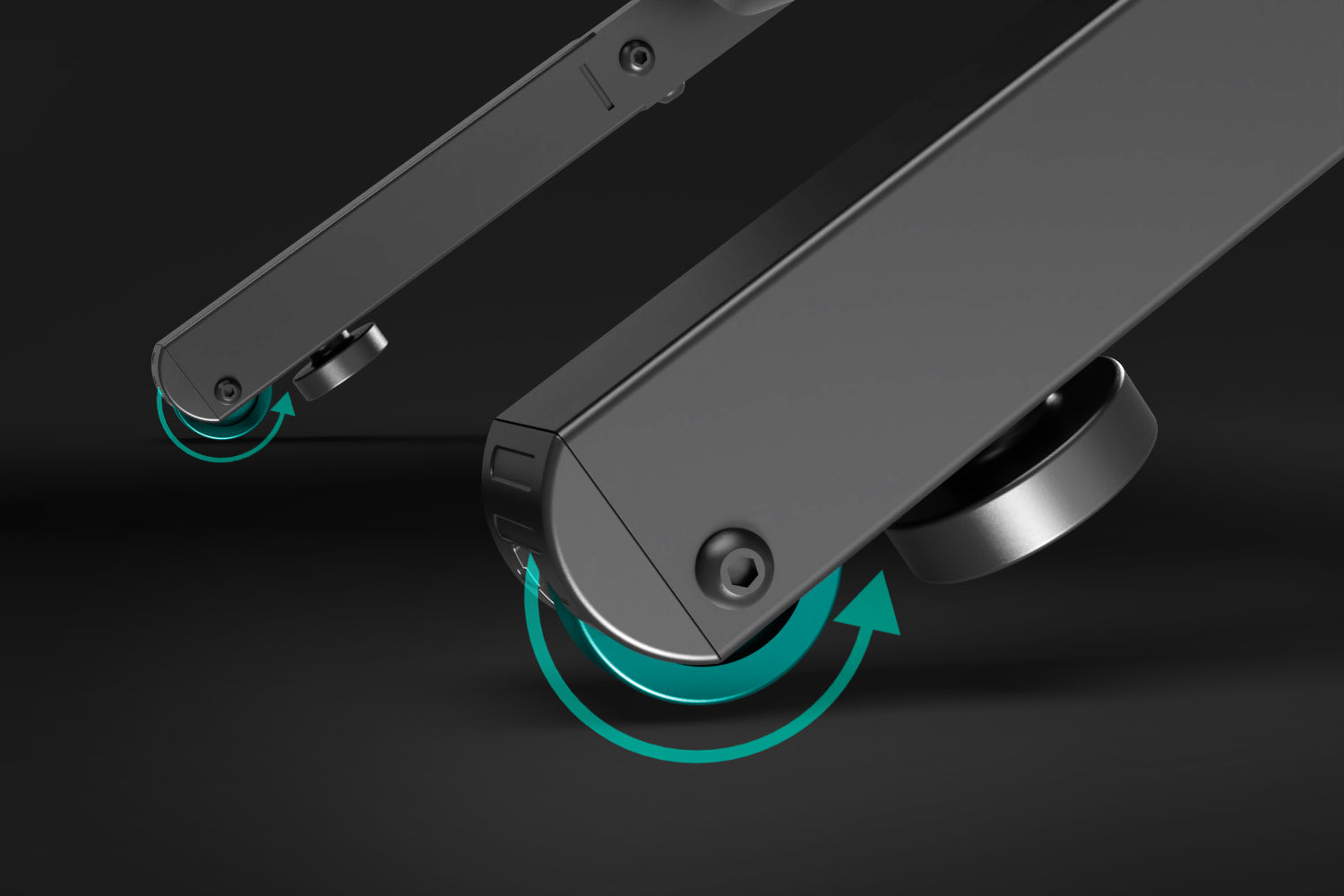 Käytön jälkeen juoksumatto voidaan vaivattomasti säilyttää muutamassa sekunnissa. Se taittuu helposti, ja integroidut kuljetuspyörät tekevät sen siirtämisestä helppoa ja vaivatonta.